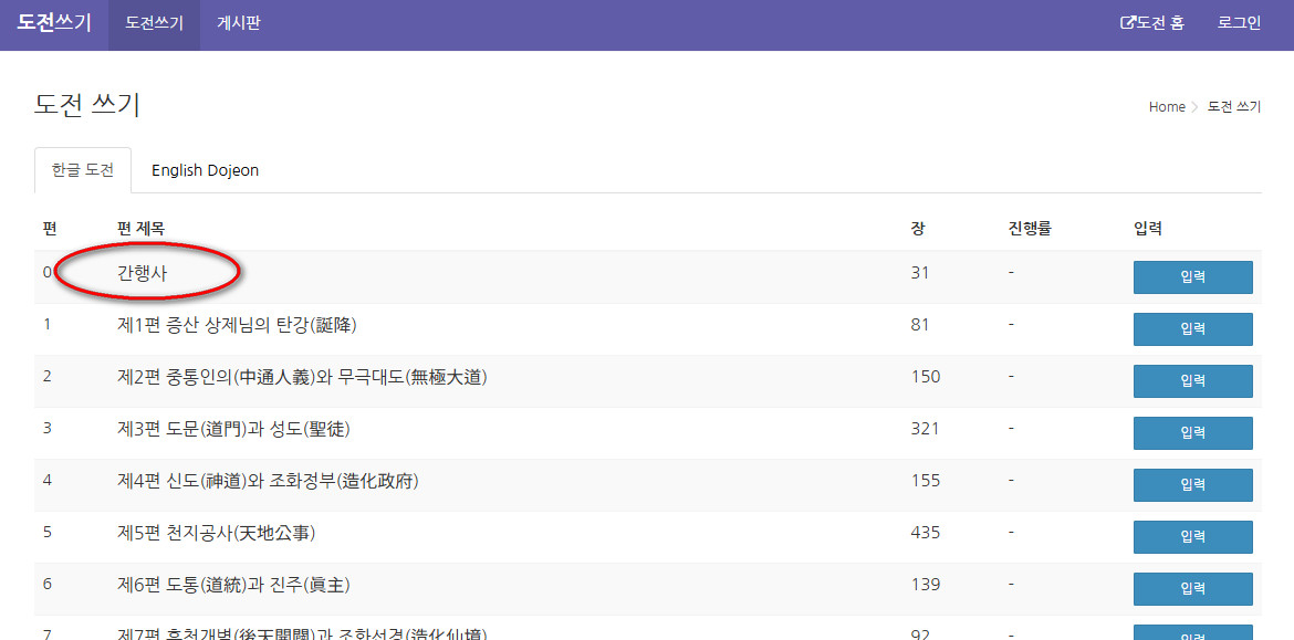 이제 도전 간행사를 입력할 수 있습니다. 맨 마지막 장은 초판 도전 간행사 입니다 .